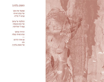 ספר לחבר על אתר שירה זה · הזמנות ע'י צ'ק או באמצעות PAYPAL · התשלום בדולרים [באר'הב] או בש"ח [בארץ]; המישלוח ייעשה לכל כתובת מלאה , עם/בלי הקדשה לפי הוראות המזמין. · משלוח חינם לכל כתובת בארה'ב , קנדה וישראל . · מחיר עותק אחד $18 [ $15 כ'א לשני עותקים או יותר ] · או , 60 ש"ח לאחד [55 ש"ח כ'א לשני עותקים או יותר ] |